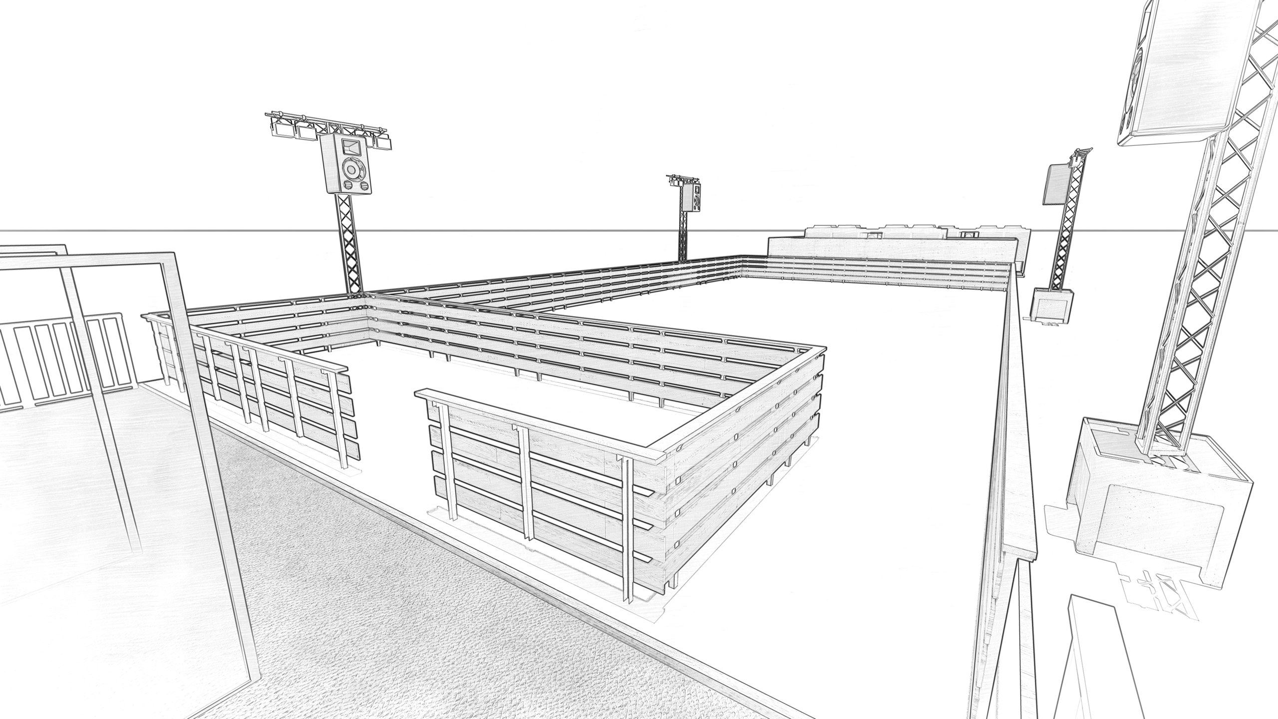 - Un espace assez grand pour accueillir la patinoire, la zone d’accueil, la zone technique et le public qui sera tout autour.
